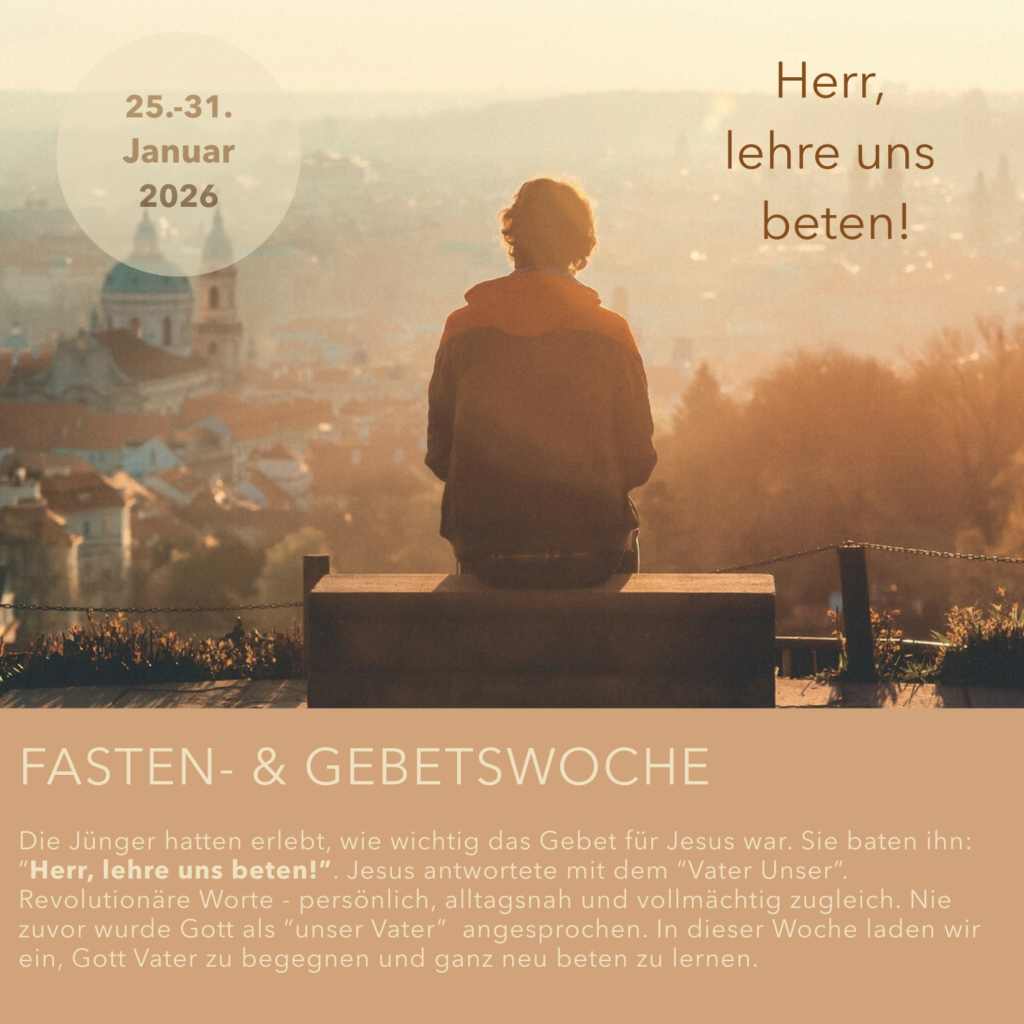 Bald schon startet unsere Gebetsaktion als Gesamtgemeinde: Die Fasten & Gebetswoche 2026, vom So., 25. Januar bis Sa., 31. Januar, dieses Mal zum Thema „Herr, lehre uns beten!“ Entlang das Vaterunsers wollen wir Gottes Vaterherz und verschiedene Arten von Gebet entdecken.